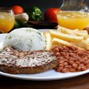 Marmitex padrão com cardápio do dia e opção da carne. Serve entre 0,700 a 0,800g.